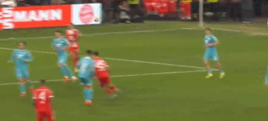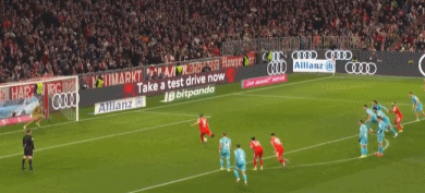 第45分鐘,凱恩再次操刀破門,完成梅開二度好戲,拜仁再度領先,2-1!