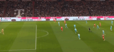 第89分鐘,穆西亞拉斷球,路易斯-迪亞斯內切推射得手,大演帽子戲法,同時全場獨造5球,5-1!