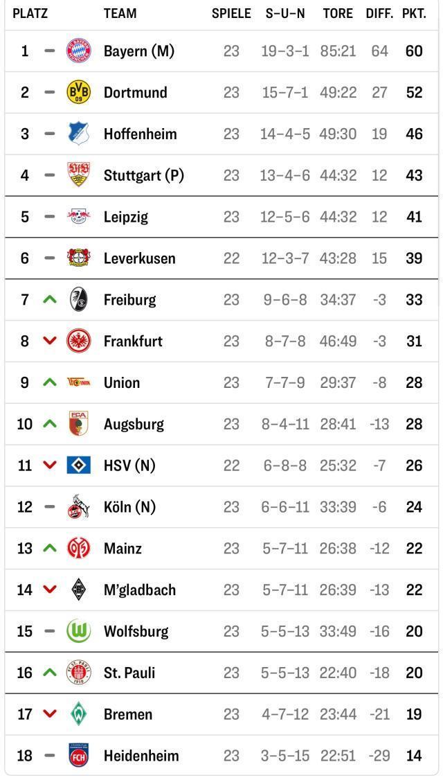不來梅本輪做客1比2輸給圣保利,兩隊在積分榜上互換位置,不來梅自本賽季第1輪后首次陷入直降區,綠白軍團連續13輪不勝,創造了球隊單賽季之內的最長不勝紀錄。在重壓之下,本賽季整體表現不錯的德國U21國門巴克豪斯也出現了失誤,球隊自身進攻仍是雷聲大雨點小,在混戰中依靠替補前鋒米洛舍維奇打入一球。